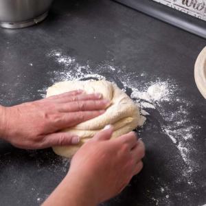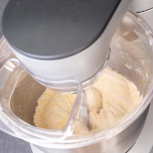 Den Teig etwa 10 Minuten lang mit der Küchenmaschine verkneten.