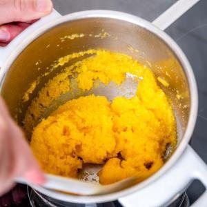 Das Brühstück musst du etwa 1 Stunde vor dem Teig zubereiten, da es komplett abkühlen muss.